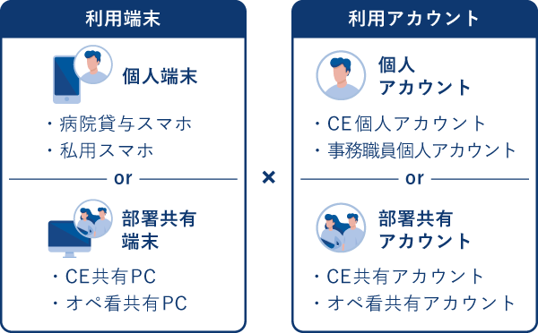 職員1人1人に専用端末がない場合でも、院内環境に応じて柔軟にご利用いただけます。