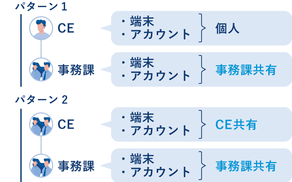 ※Link, Assetともに、1つのアカウント(例:管理課共通アカウント)で
