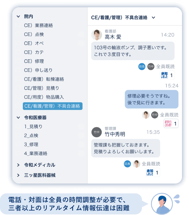 1対1のみならず、院内&外部をまたいだ3者以上コミュニケーションもスムーズに