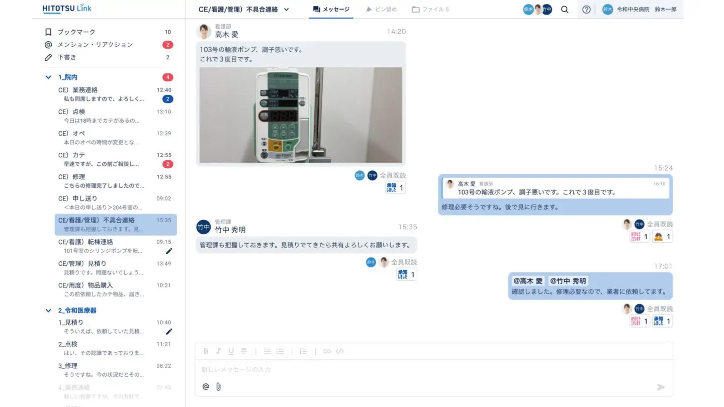 1対1のみならず、院内&外部をまたいだ3者以上コミュニケーションもスムーズに